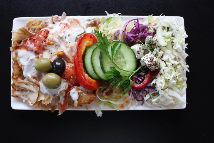 (sałata lodowa, oliwki, ser feta, pomidor, ogórki)