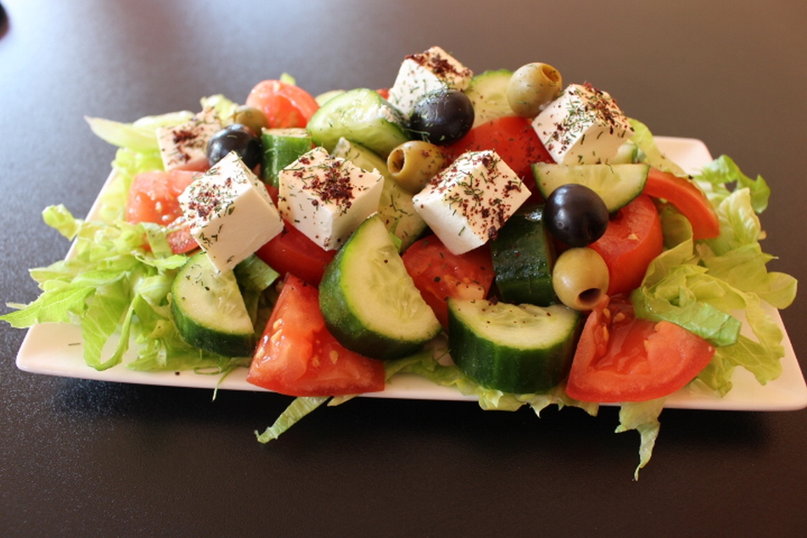 (pomidory, ogórki, sałata lodowa, ser feta, oliwki, koperek, cebula)